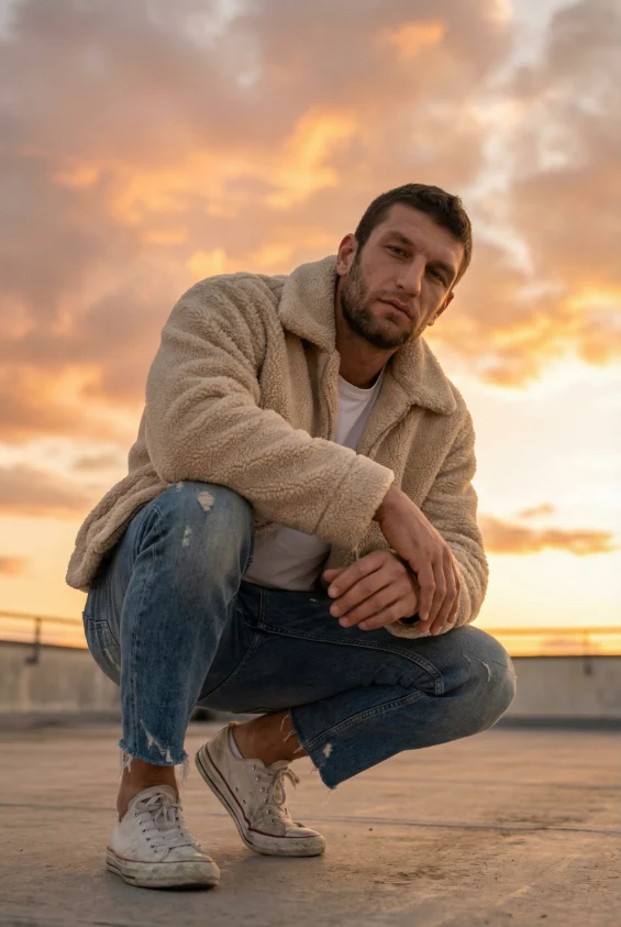 Фотосессия в инди-эстетике закатного неба